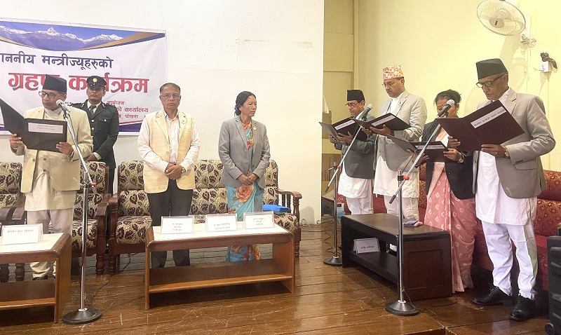 नवलपुरकी पद्मा जिसीले भूमि व्यवस्था कृषि तथा सहकारीमन्त्री, बाग्लुङका कृष्ण पाठकले स्वास्थ्यमन्त्री, कास्कीका प्रकाश केसीले भौतिक पूर्वाधार तथा विकास र पर्वतका मित्रलाल बस्यालले उद्योग तथा पर्यटनमन्त्रीको रूपमा शपथ