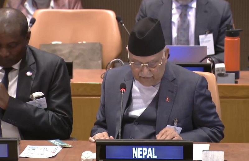 संयुक्त राष्ट्रसङ्घको ७९औँ महासभाअन्तर्गत उच्चस्तरीय प्लेनरी बैठकमा ‘समुद्री सतह वृद्धिका कारण उत्पन्न चुनौती’ विषयमा सम्बोधन गर्नुहुँदै प्रधानमन्त्री ओलीले विश्वव्यापी कार्बन उत्सर्जनका कारण नेपालका हिमाल पग्लिएको बताउनुभयो ।