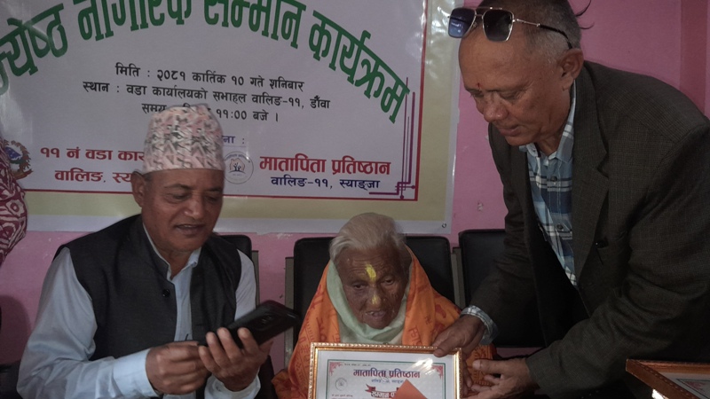 मातापिता प्रतिष्ठान वालिङ र वालिङ नगरपालिका वडा नं. ११ को संयुक्त आयोजनामा शनिबार वडा कार्यालय डौँवामा जेष्ठ नागरिक सम्मान गरिएको हो ।