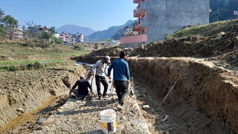 वालिङ नगरपालिका ८ नम्वर वडा भीमटारी क्षेत्रमा रहेको ढावखोला नियन्त्रणका लागि ढलानसहित आरसिसी पक्की गराउने काम सुरु गरिएको छ ।